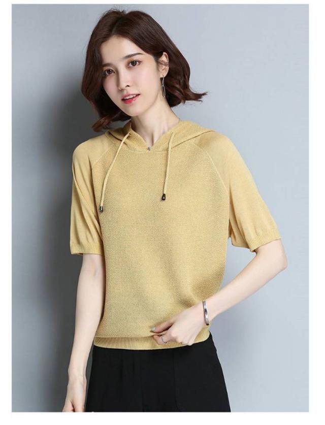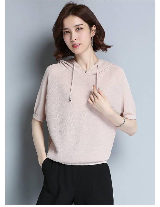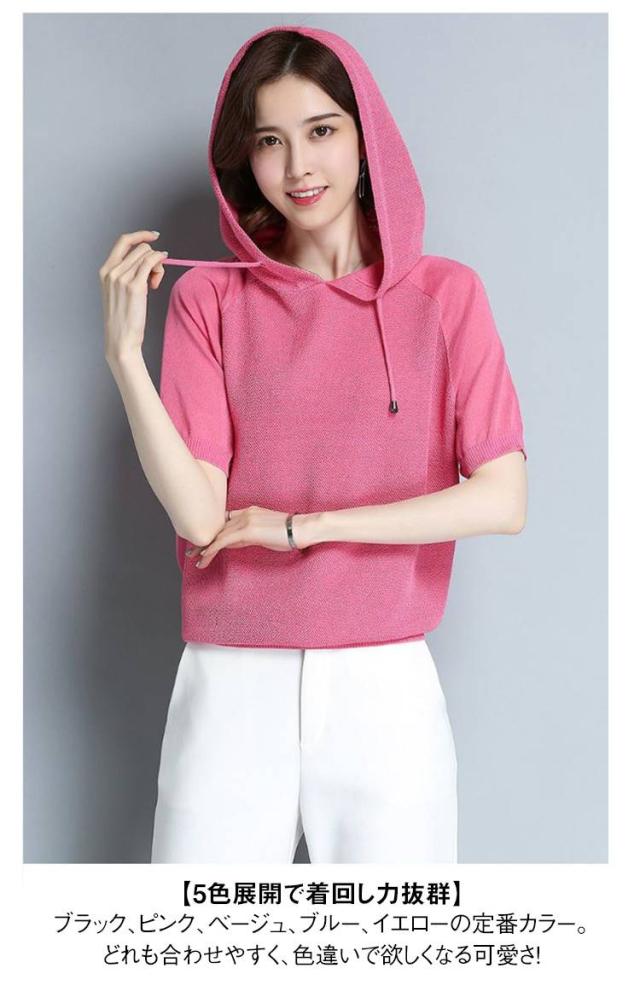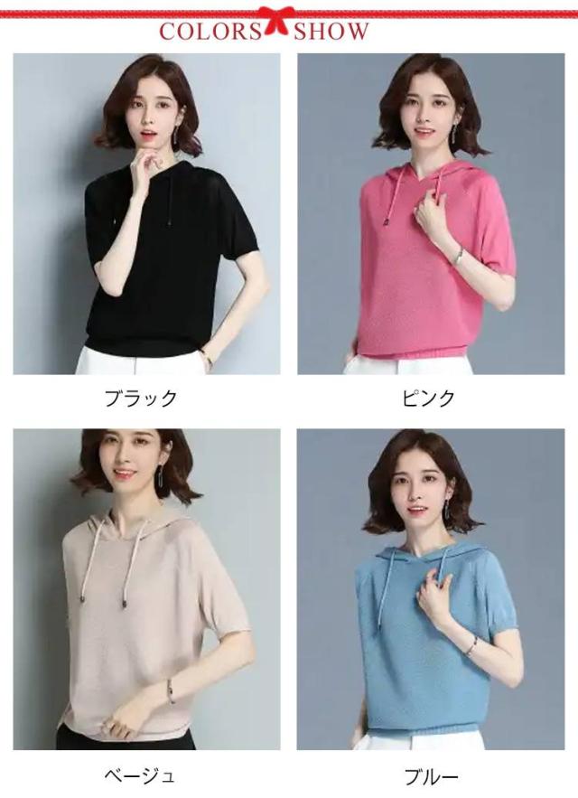 | 【さらっと涼しいニット素材】 接触冷感のニット生地を使用し、暑い夏でも涼しく快適。柔らかく伸縮性があり、チクチクせず肌ざわり◎。 【フード付き×半袖で旬コーデに】 トレンドのフーディーデザインがカジュアル感をプラス。Tシャツ感覚で着られるので、デイリーにもおすすめ! 【ゆったりサイズで体型カバー◎】 程よくルーズなシルエットで、お腹まわりや二の腕も自然にカバー。大人女子のリラックス感コーデにぴったり。 【5色展開で着回し力抜群】 ブラック、ピンク、ベージュ、ブルー、イエローの定番カラー。どれも合わせやすく、色違いで欲しくなる可愛さ! 【軽やかニットで上品カジュアル】 ニット特有の落ち感ときれいなシルエットで、Tシャツ以上、ブラウス未満の上品カジュアルが完成します。 | |