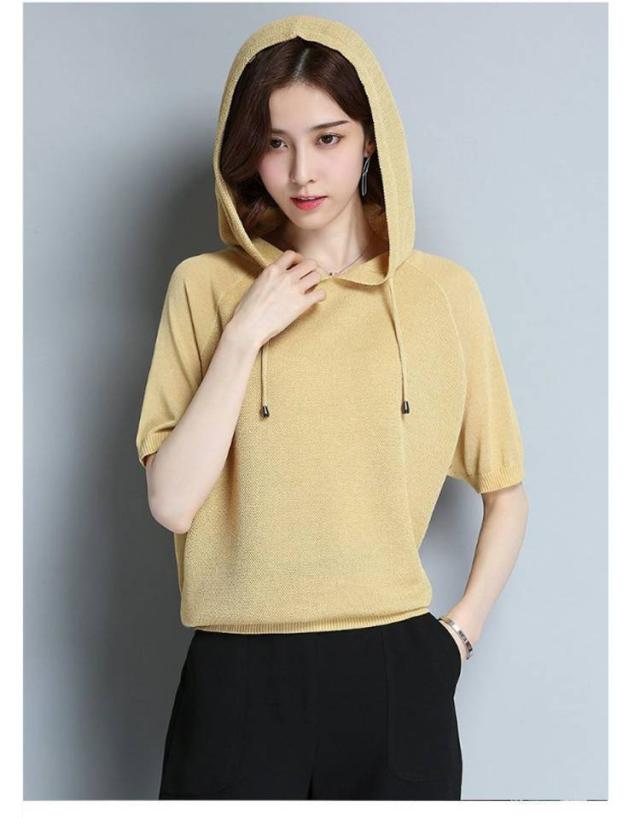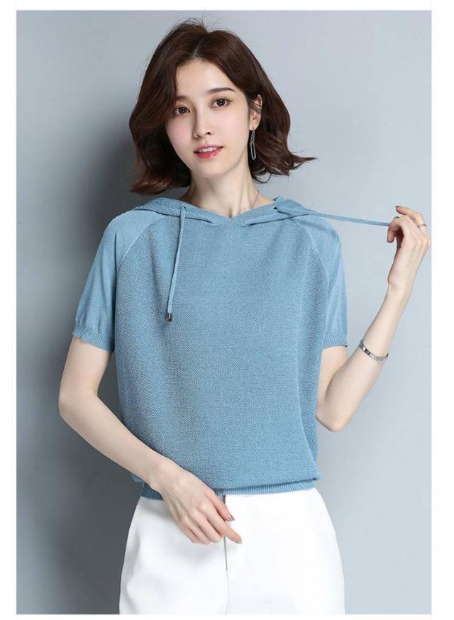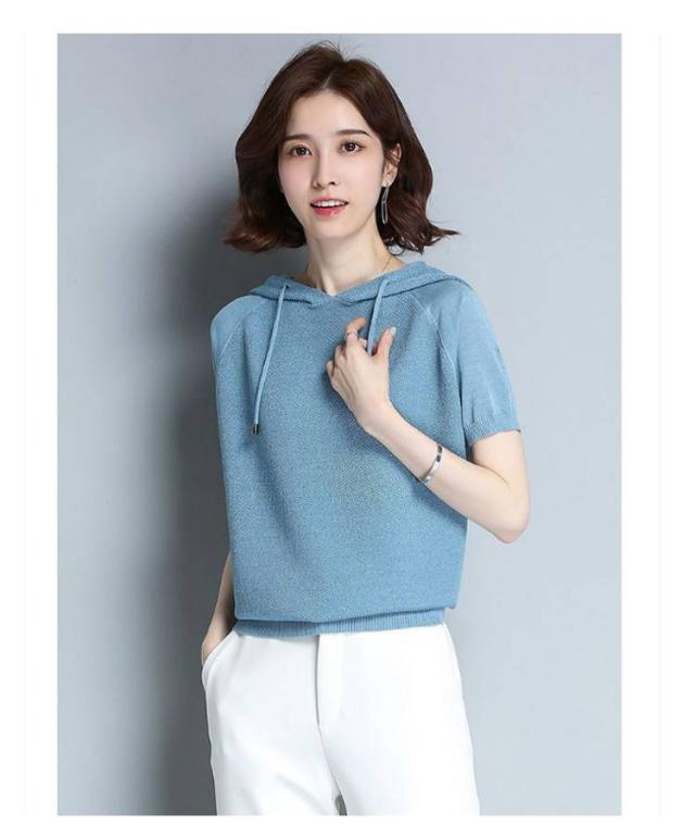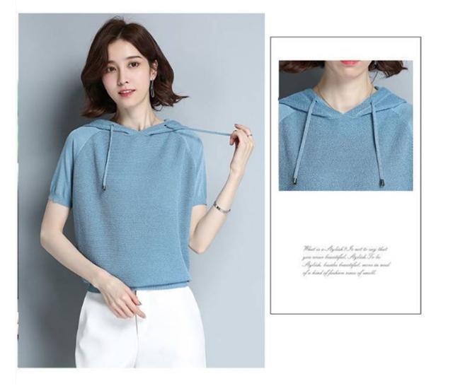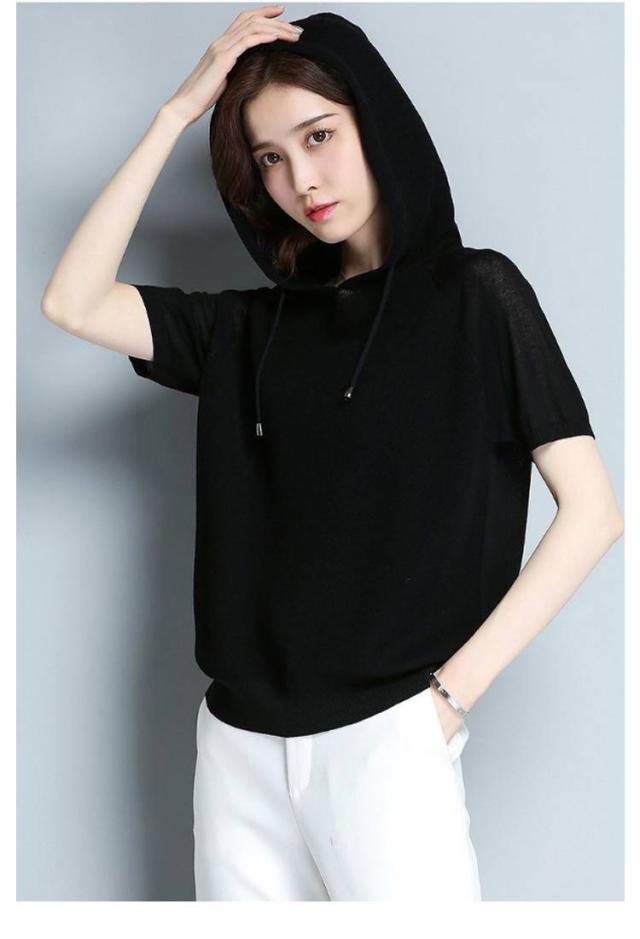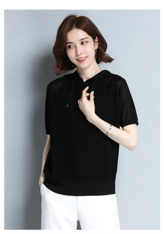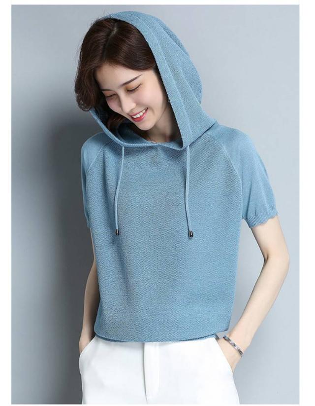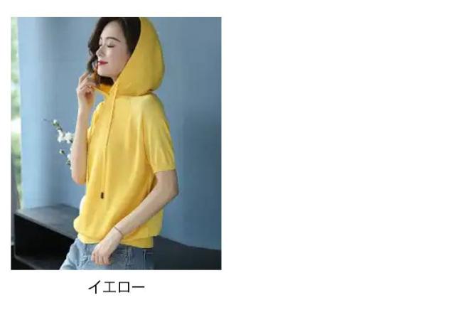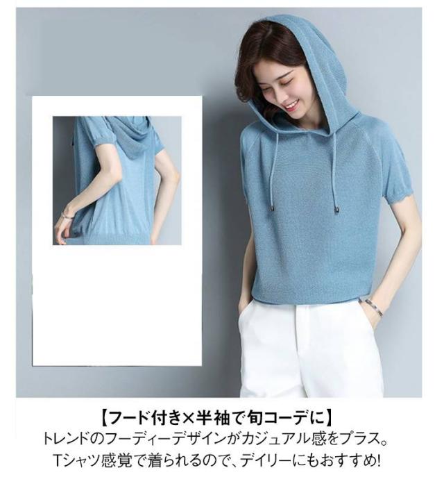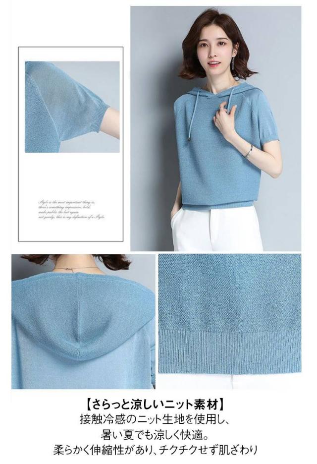 フード付き サマーパーカー サマーニット 冷感ニット きれいめ tシャツ 半袖 薄手ニットトップス 半袖パーカー フーディー 涼感素材 夏用 カジュアル サマーニット 30代 20代