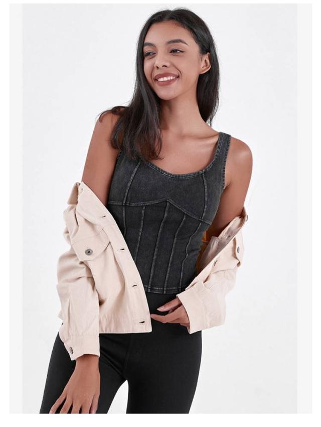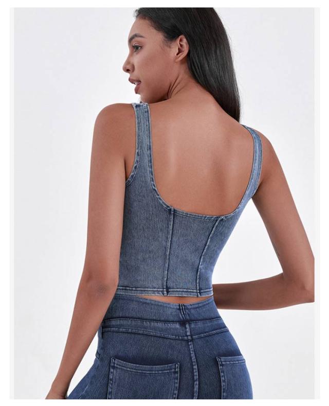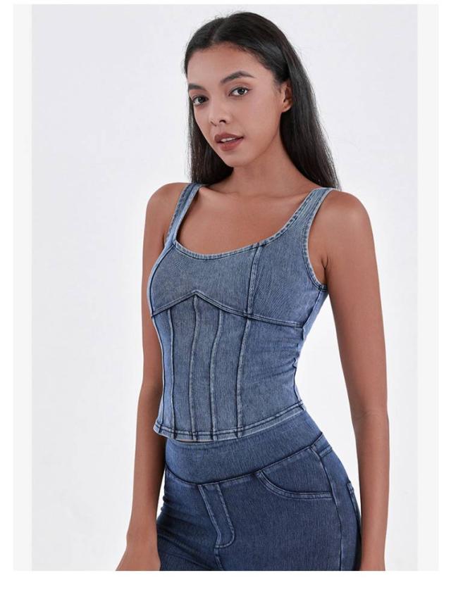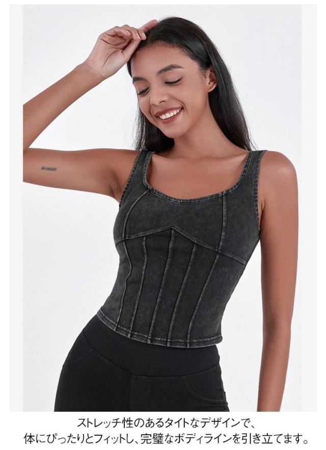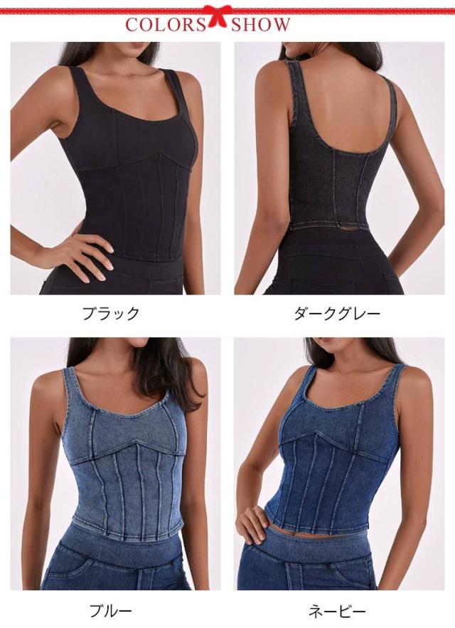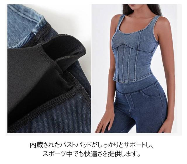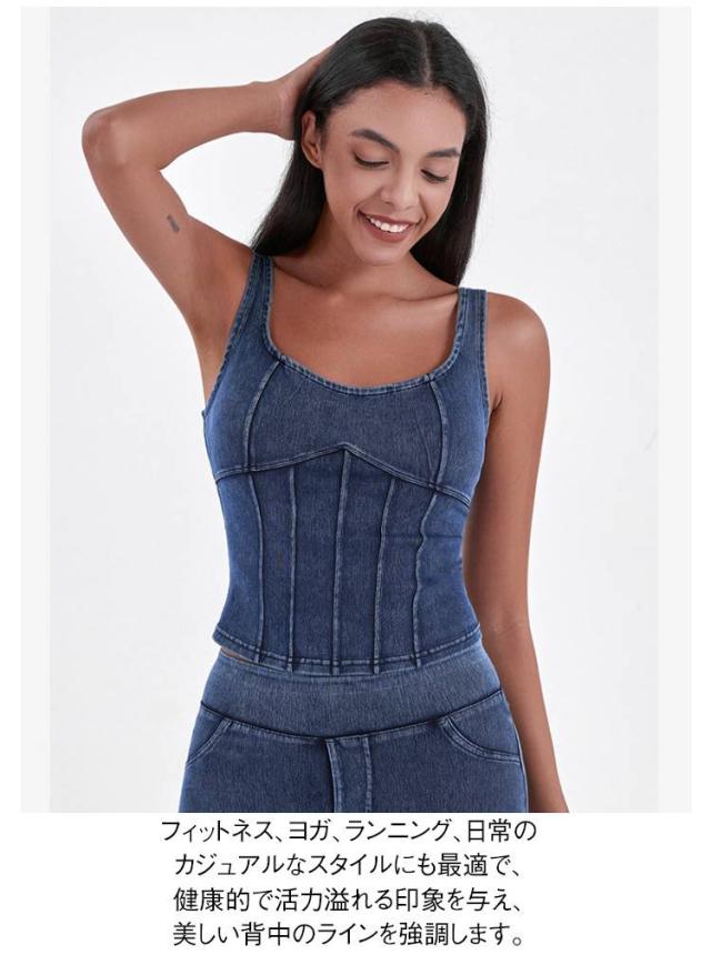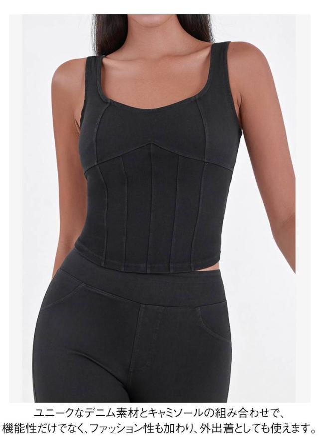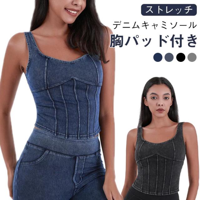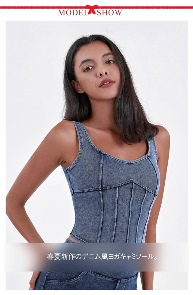 ショート丈 デニム キャミソール フィットネス ヨガ デニムキャミソール 伸縮性 ヨガトップス インナー スポーツインナー ストレッチ 夏服 デニム ランニング スポーツ
