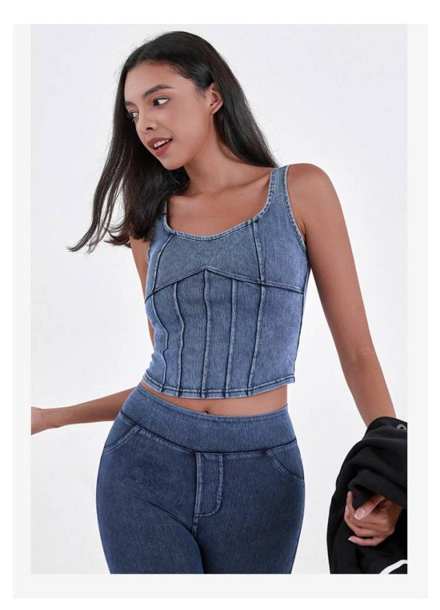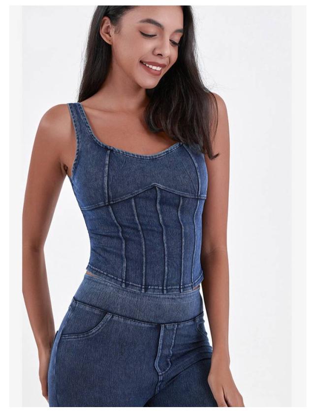 | 春夏新作のデニム風ヨガキャミソール。 ストレッチ性のあるタイトなデザインで、体にぴったりとフィットし、完璧なボディラインを引き立てます。 内蔵されたバストパッドがしっかりとサポートし、スポーツ中でも快適さを提供します。 ユニークなデニム素材とキャミソールの組み合わせで、機能性だけでなく、ファッション性も加わり、外出着としても使えます。 フィットネス、ヨガ、ランニング、日常のカジュアルなスタイルにも最適で、健康的で活力溢れる印象を与え、美しい背中のラインを強調します。 | |