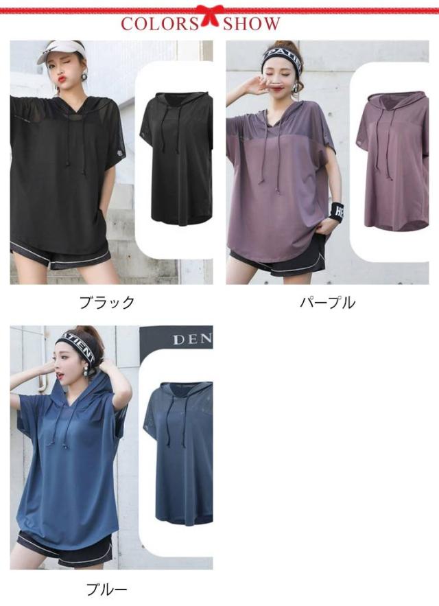 スポーツトップス 速乾 ランニングパーカー ウエア ヨガ Tシャツ ゆったり 薄手 スポーツトップス 大きいサイズ 半袖 ゆったり 夏服 M-5XL