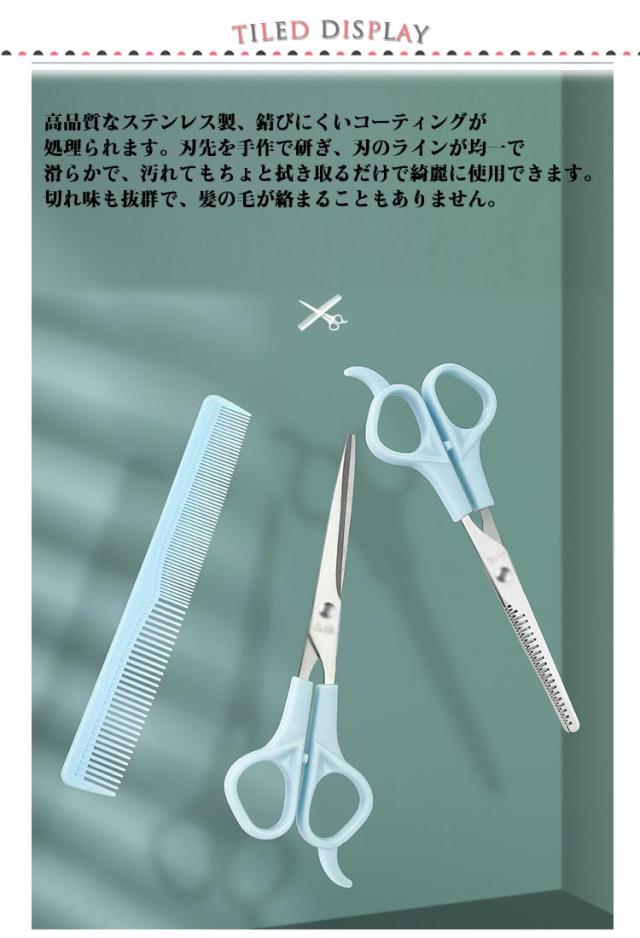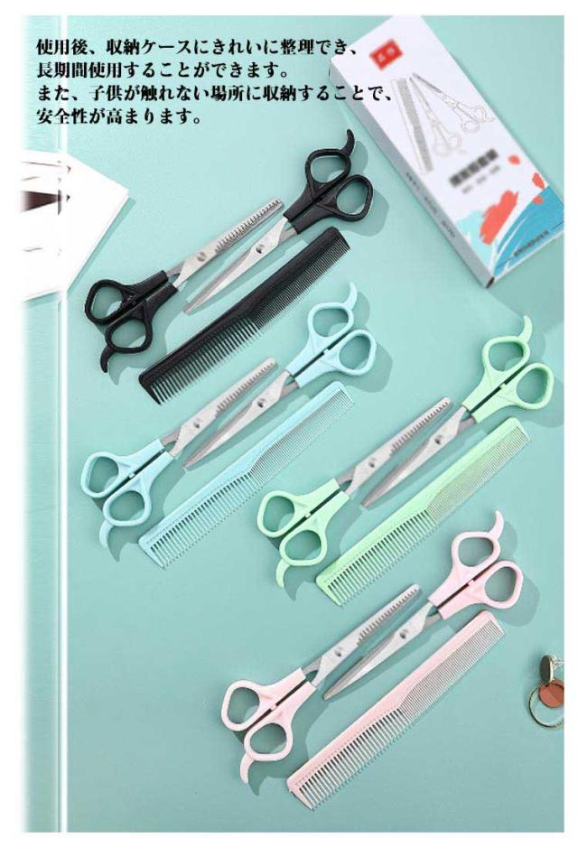 | サイズについての説明 | サイズ:すきバサミ1本:17*6.8cm、カットハサミ1本:17*6.8cm、櫛1本:17.5*2.5cm。 ※サイズ計測には誤差が生じます。 |
