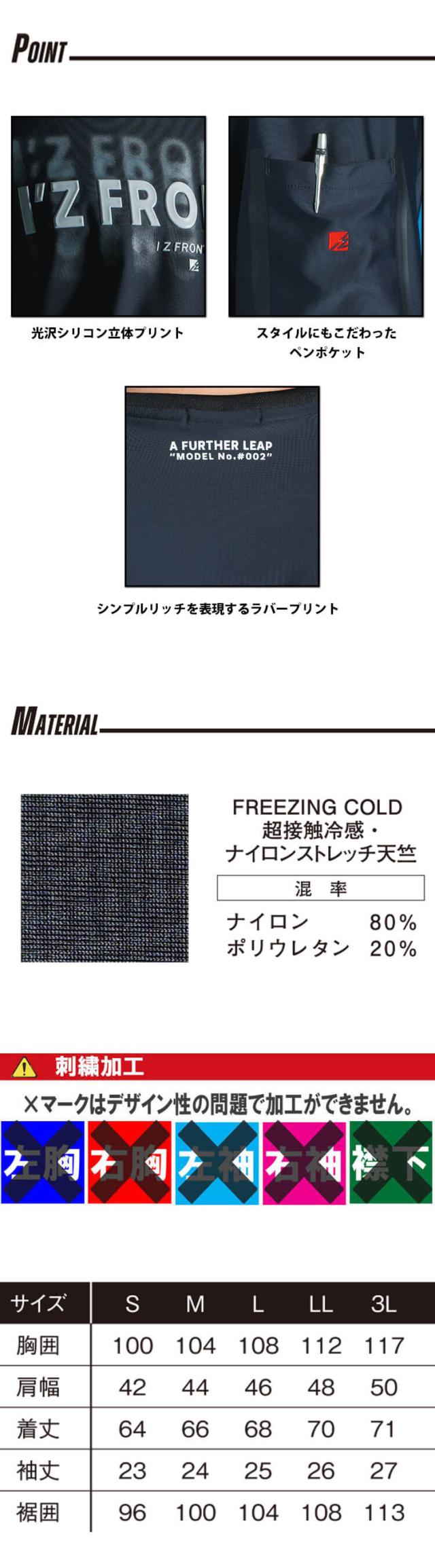 [即納]アイズフロンティア IZ FRONTIER 超接触冷感 ストレッチナイロン半袖クルーネックシャツ 002 春夏 2025年春夏新作