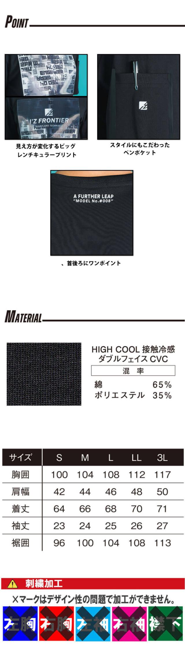 [即納]アイズフロンティア IZ FRONTIER 接触冷感ダブルフェイスCVC半袖クルーネックシャツ 008 春夏 2025年春夏新作