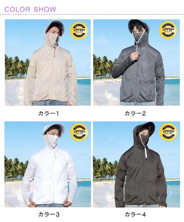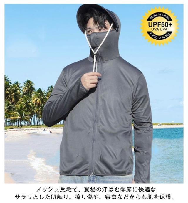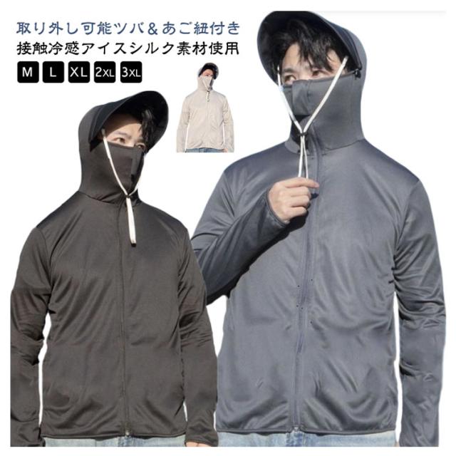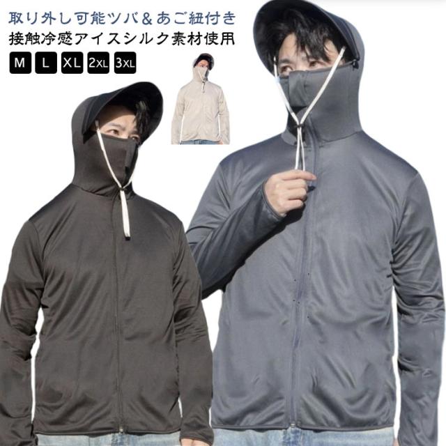春夏 UVカット アイスシルク メッシュ 日焼け防止 指穴付き パーカー UPF50+ メンズ フィッシングウエア M 釣り 長袖 紫外線対策 UVパーカー アウトドア 防蚊対策おしゃれ ツバ取り外し可能 アウトドア 海釣り 大きいサイズ ジャケット L XL 2XL