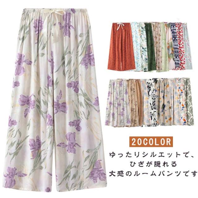 花柄 レディース 秋 ルームパンツ ルームウェア ルームウェア かわいい 涼しい パジャマ ワイドパンツ ステテコ 夏物 春 薄い ボトムス 九分丈 総柄 ゆったり 薄手 リラックスパンツ 部屋着 おしゃれ 9分丈 婦人 ロングパンツ