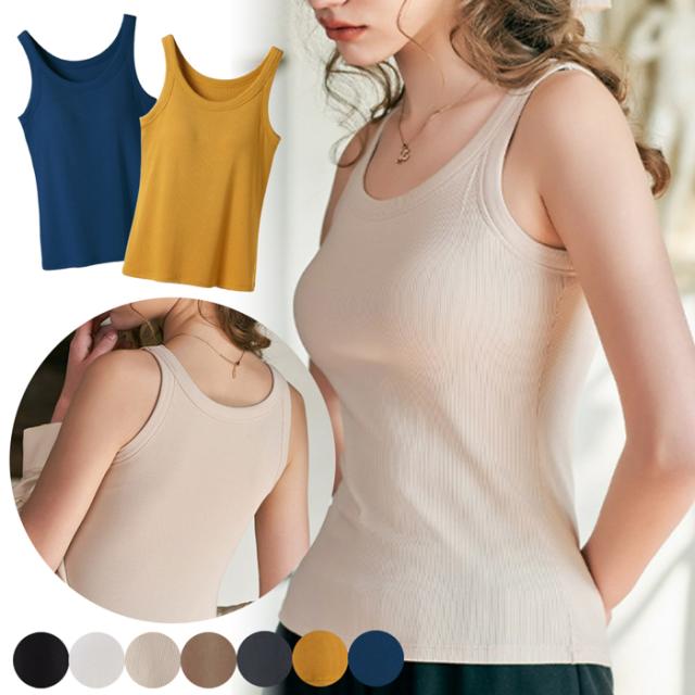 ブラトップ タンクトップ カップ付き レディース リブ編み Uネック しっかりした生地 パッド付 オシャレ 上品 さらさら シンプル 無地 ストレッチ 黒 白 rr-035