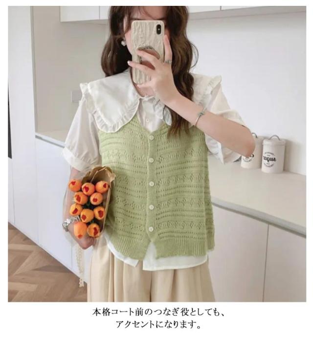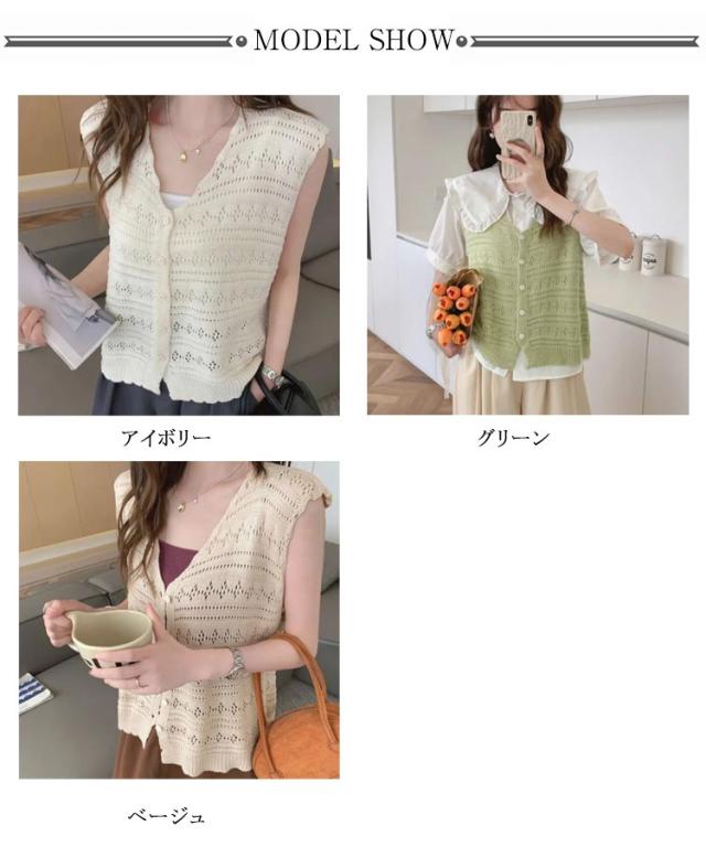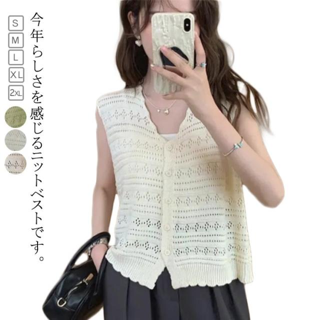 ベスト おしゃれ ベスト レディース ニットベスト ジレ ジレ ニット サマー ベスト レディース トップス レディース ベスト 夏ベスト ミドル丈 透かし編み ノースリーブ 春夏 重ね着 可愛い 心地がいい カジュアル 薄手 通勤 通学