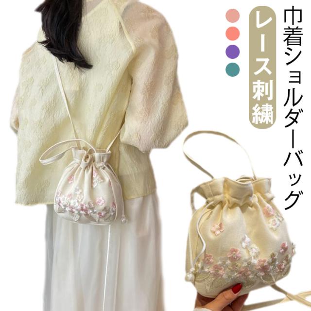 布製 レース刺繍 漢服 ミニバッグ 巾着バッグ ポシェット 花火大会 ショルダー 手提げ かわいい ショルダーバッグ 和装バッグ チャイナ風 斜めがけ 着物 振袖 浴衣用 おしゃれ お祭り 卒業式