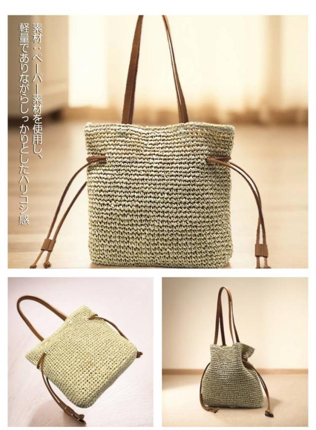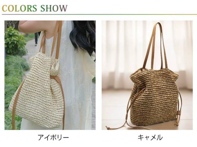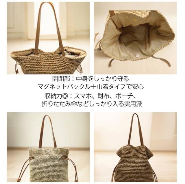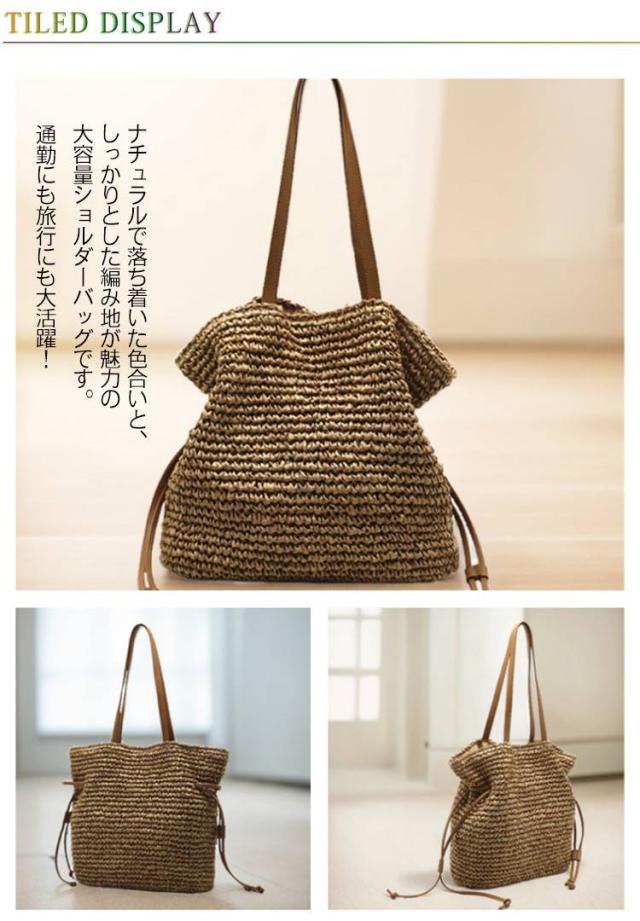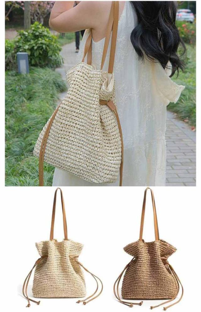 ナチュラル レディース ショルダーバッグ 肩掛け かごバッグ 編み込み 大容量 無地 巾着バッグ 手提げ ハンドバッグ かごバッグ 可愛い おしゃれ 大人 通勤 通学 リゾート