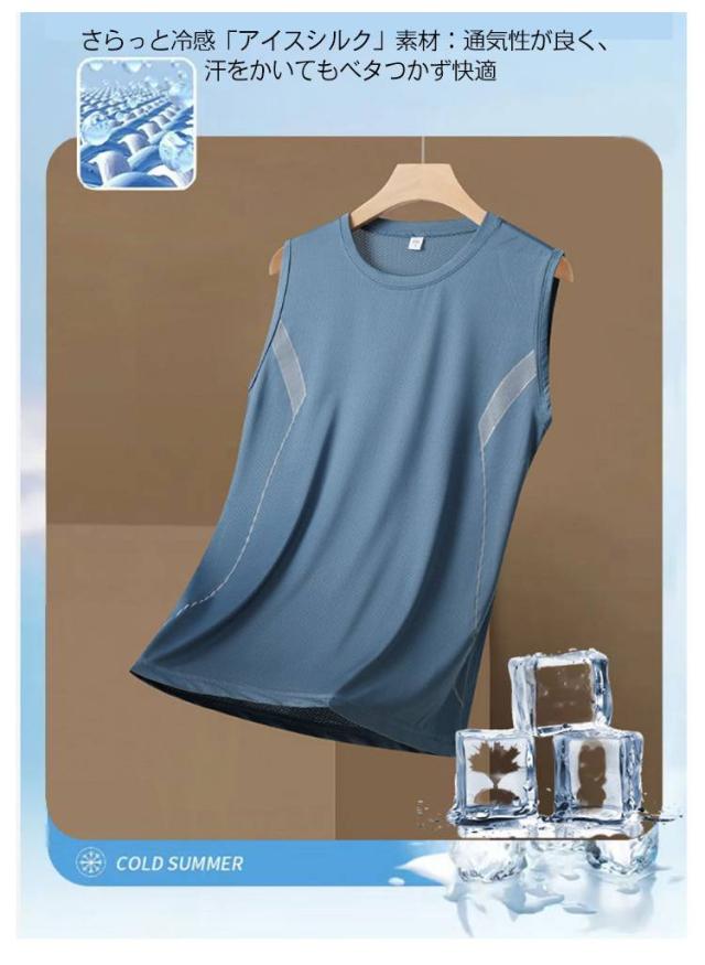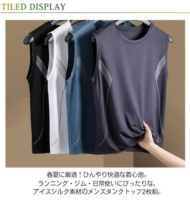 部屋着 冷感 メンズ 筋トレ インナーシャツ 【2枚セット】アイスシルク 肌着 スポーツウェア 伸縮性 吸汗速乾 バスケ タンクトップ 【2枚セット】アイスシルク トレーニング ジム 涼しい カジュアル