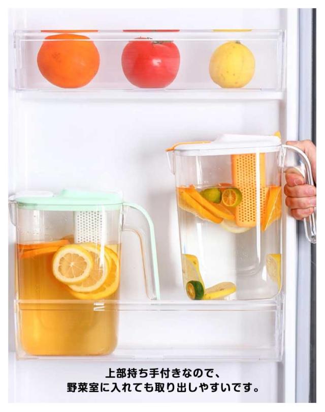 | 冷たい飲みものを入れて冷蔵庫に置いておけるスリムピッチャー。 大容量なのにスリムな設計で、ドアポケットにもすっきり収納。 片手ワンプッシュで注ぎ口の開閉ができるので、飲むときも衛生的♪ 注ぎ口の先端はシャープな形状になっているので、湯切れもよくやすかったです! 上部持ち手付きなので、野菜室に入れても取り出しやすいです。 大容量なので家族が多い家庭でも安心!夏場などは必須のアイテム。 広口タイプで、中まで手を入れてしっかり洗えてお手入れラクラクです | |