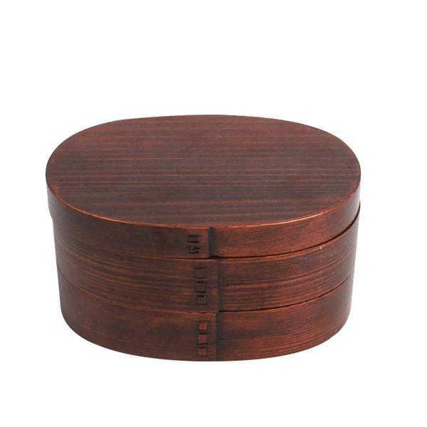 ED2968518 木製 二段 小判型 木目 バンド付き 曲げわっぱ弁当箱