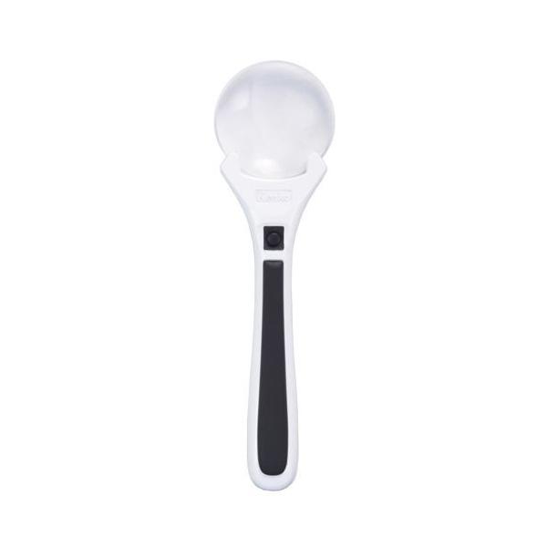 小さく細かな文字が大きく見える倍率3倍。4.5倍の小玉レンズも付いて、より拡大して見たいときに便利です。白と黒のツートンカラーとフチなしレンズでスタイリッシュなデザインも魅力。持ち手の黒ライン部は、滑りにくい素材を使用し、持ちやすくなるよう工夫をしています。