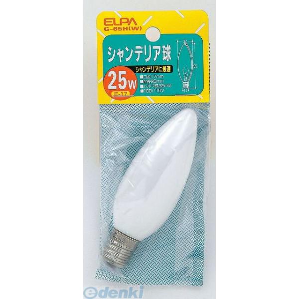 【納期:約1週間】朝日電器 ELPA G-65H-W シャンデリアE1725W G65HW シャンデリア球 ホワイト 電球 エルパ