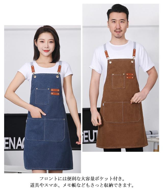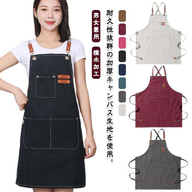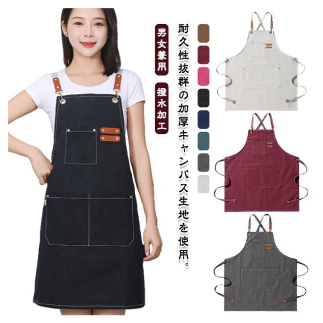 キッチンエプロン エプロン ワークエプロン カフェエプロン 大きいポケット付き 男女兼用 ガーデニングエプロン 飲食店 エプロン シンプル 厚手 メンズ レディース 作業用 業務用 仕事用 肩紐調節可能 撥水加工 大人用エプロン