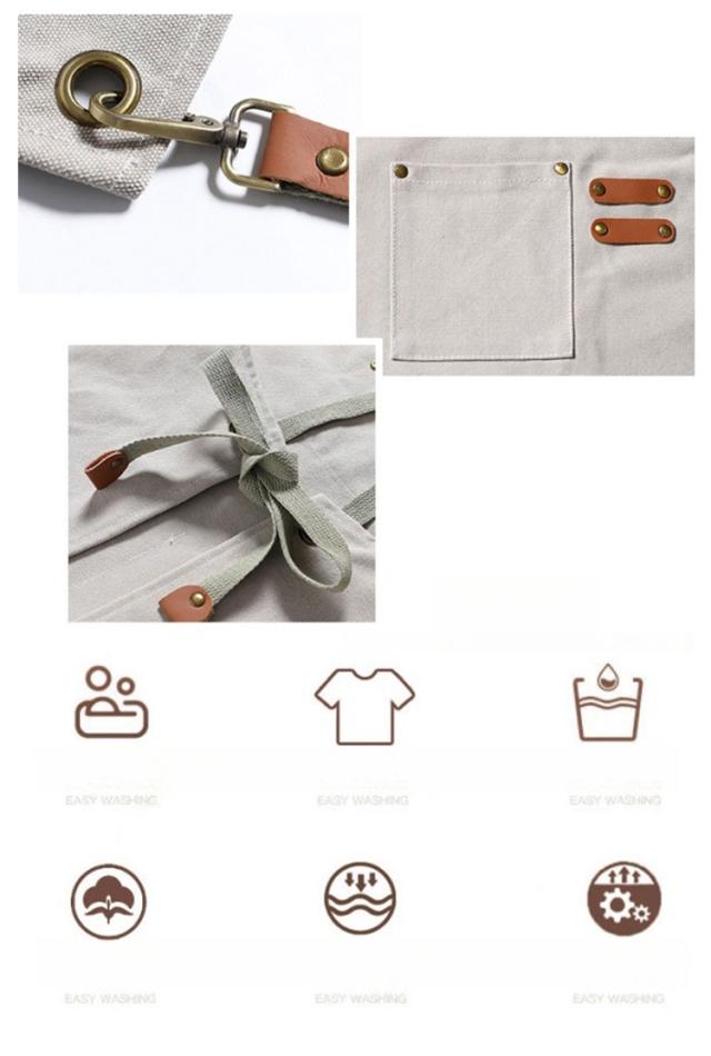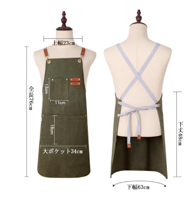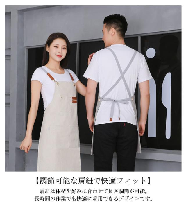 | 耐久性抜群の加厚キャンバス生地を使用。 【汚れに強い!防油・防汚加工】油跳ねや水濡れからしっかりガード。 ガーデニングやDIY、カフェ業務にも対応できるしっかりとした質感が特徴です。 キッチン作業や飲食店のホール業務にもおすすめの実用派エプロン。 フロントには便利な大容量ポケット付き。道具やスマホ、メモ帳などもさっと収納できます。 【調節可能な肩紐で快適フィット】肩紐は体型や好みに合わせて長さ調節が可能。長時間の作業でも快適に着用できるデザインです。 【男女兼用・ユニセックスデザイン】シンプルかつスタイリッシュなデザインで、男性も女性もおしゃれに着こなせる万能モデル。 | |