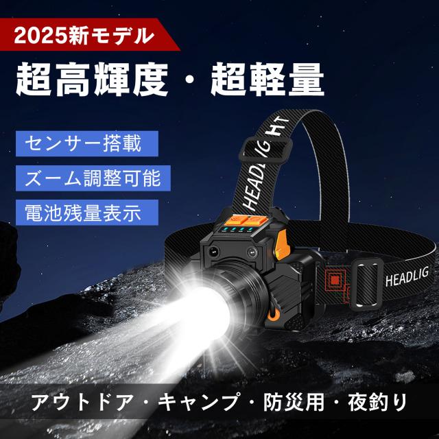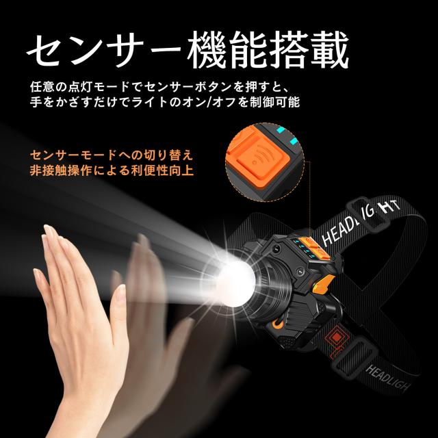 ヘッドライト LED 充電式/電池式 兼用 超高輝度 長時間点灯 ズーム/センサー機能 登山/キャンプ/釣り 防災 作業用 軽量