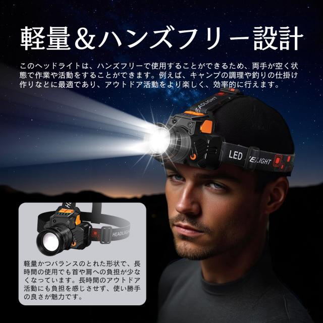 夜間作業やアウトドア活動、非常時に欠かせない、超高輝度ヘッドライトが新登場!軽量かつ高機能で、様々なシーンで活躍します。詳細な仕様と特徴をご紹介します。