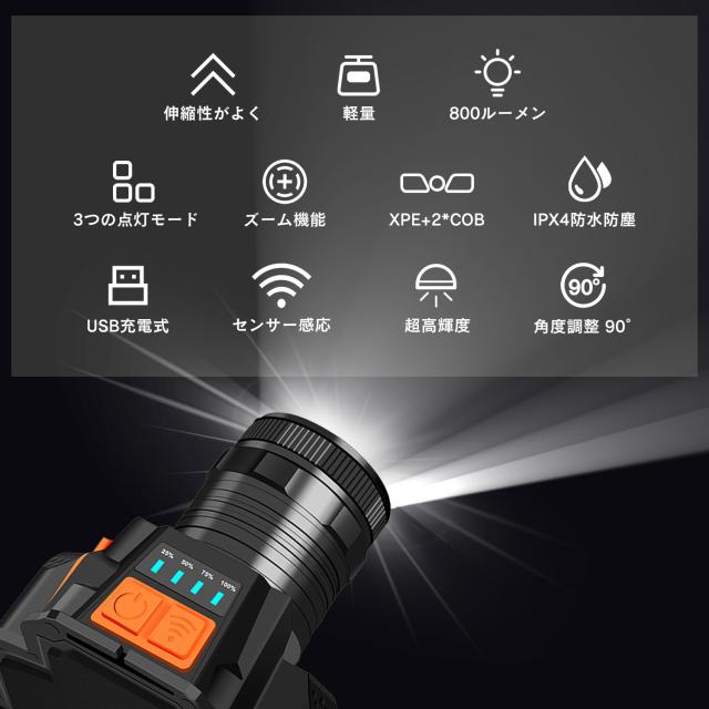 【超高輝度・多機能ヘッドライト - 800ルーメン・USB充電式】