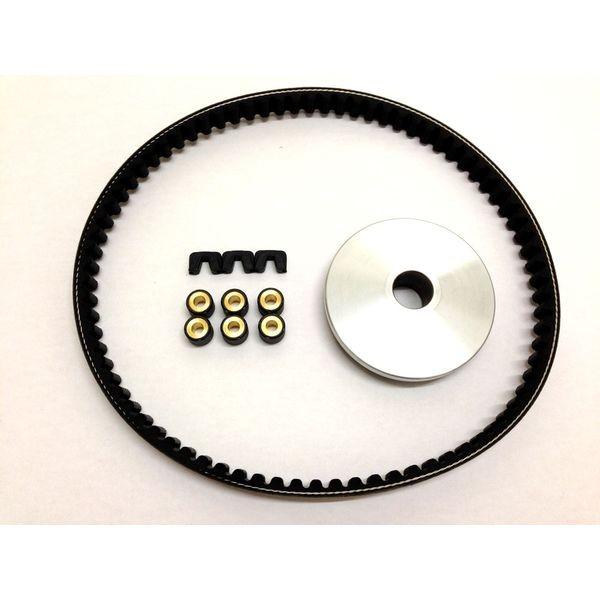 キット内容:プーリー(φ18)/スライドピース/ウエイトローラー(15x12 6g)/ドライブVベルトをセットにした駆動系オールインワンセットです。なんだか最近スピードがでないなぁ・・と思うそこのあなた!駆動系まわりってノンメンテナンスで駆動系主要部品の交換が必要ってパターンが多いんです。「修理代金はいくらかかるのか」と不安になったら当キットの出番。車種専用キットだから部品の組み合わせの心配ご無用なのです!