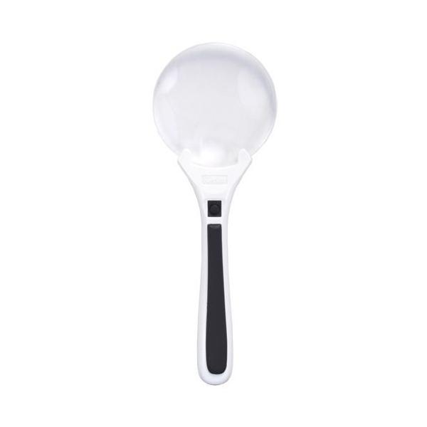 新聞、雑誌、地図などを長時間見るときにも目が疲れにくい倍率2倍。より小さな文字も見やすい3.5倍の小玉レンズも付いて、さらに拡大して見たいときに便利です。白と黒のツートンカラーとフチなしレンズでスタイリッシュなデザインも魅力。持ち手の黒ライン部は、滑りにくい素材を使用し、持ちやすくなるよう工夫をしています。