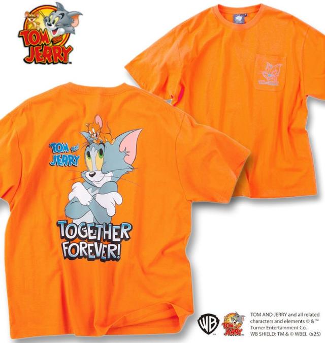 大きいサイズ TOM and JERRY 天竺 プリント ポケット付 半袖 Tシャツ オレンジ 3L 4L 5L 6L 8L/1278-5541-2-63