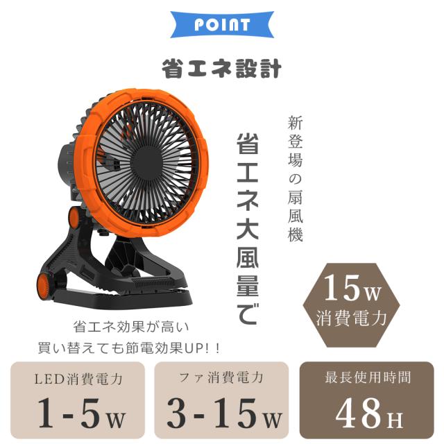 ★風を浴びて涼む『扇風機』、夜間照明として使える『LEDライト』、USB機器へ充電できる『モバイルバッテリー』。デスクワークからキャンプまで、この一台で快適な風と光を手に入れましょう。熱中症対策にも効果的で、パワフルかつ節電にも配慮した設計は、夏の日々を支える強い味方です。