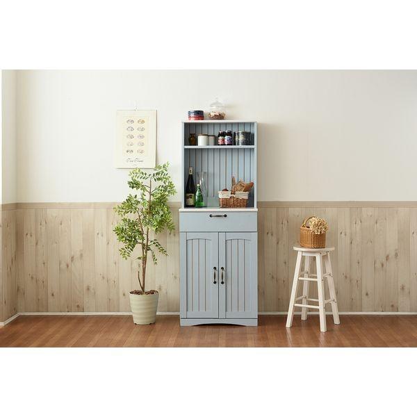 ●商品説明バイカラーで魅せるフレンチカントリースタイルのカップボード。コンパクトサイズなので一人暮らしにも最適。オープン部は2口コンセント付だから、トースターなどの調理家電の収納に便利。上段には、可動棚があるので、調味料などの小物収納に最適。下段は、引き出しと扉収納で、カトラリーから食器類をしっかり収納出来ます。丸みを帯びたフォルムと、アンティーク調の取っ手といったディテールがカントリーテイストを漂わせます。