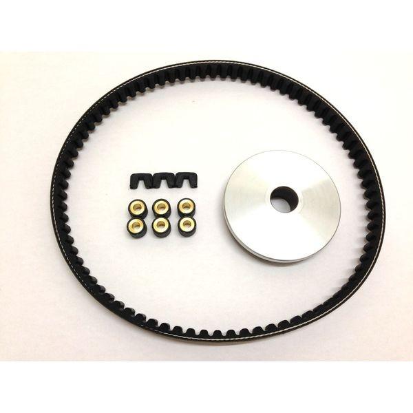 キット内容:プーリー(φ18)/スライドピース/ウエイトローラー(15x12 6g)/ドライブVベルトをセットにした駆動系オールインワンセットです。なんだか最近スピードがでないなぁ・・と思うそこのあなた!駆動系まわりってノンメンテナンスで駆動系主要部品の交換が必要ってパターンが多いんです。「修理代金はいくらかかるのか」と不安になったら当キットの出番。車種専用キットだから部品の組み合わせの心配ご無用なのです!
