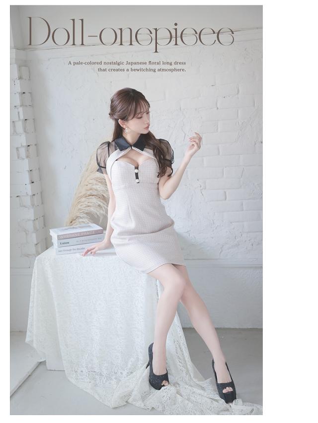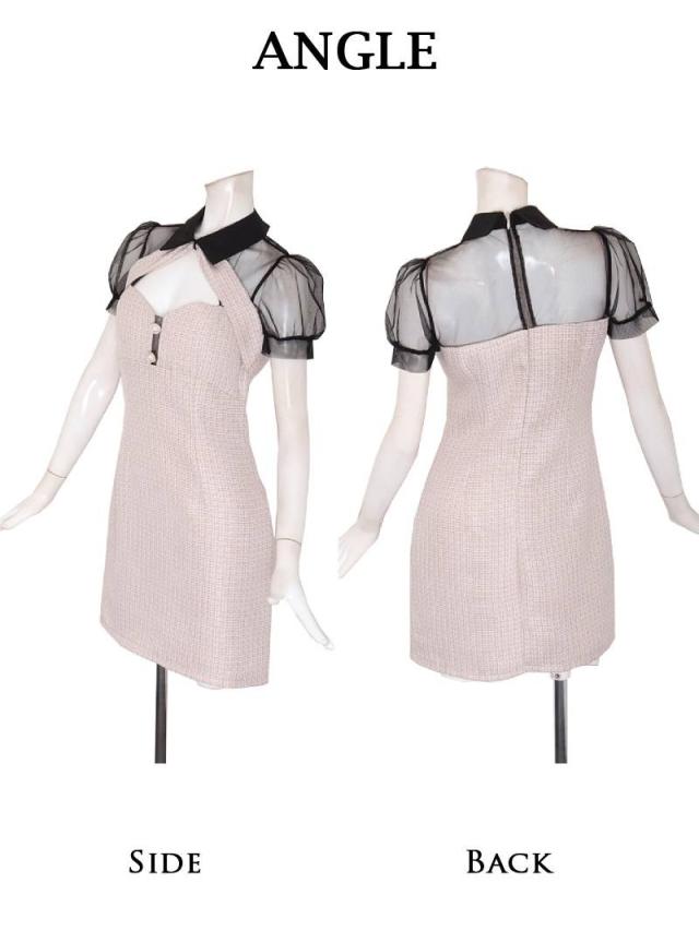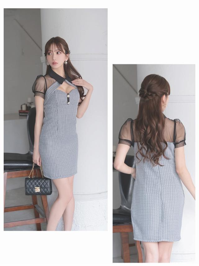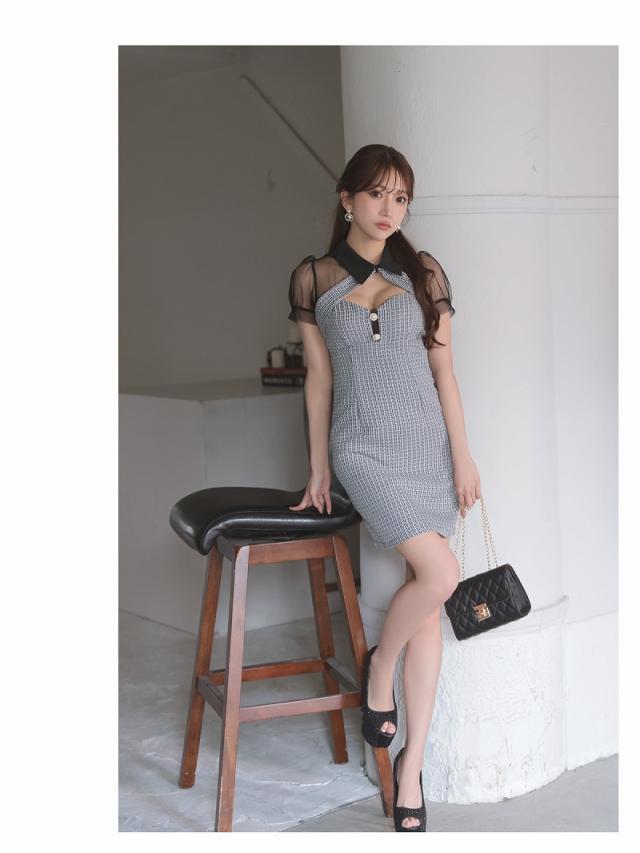 ☆春夏ツイード×メッシュのシアースリーブでおしゃれ感たっぷりのキャバドレス。