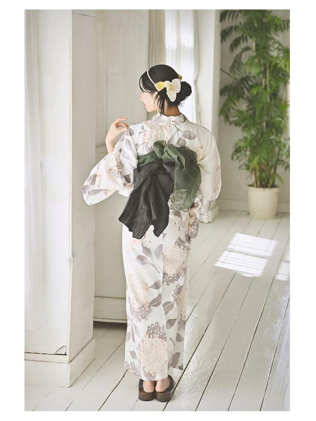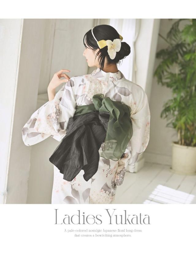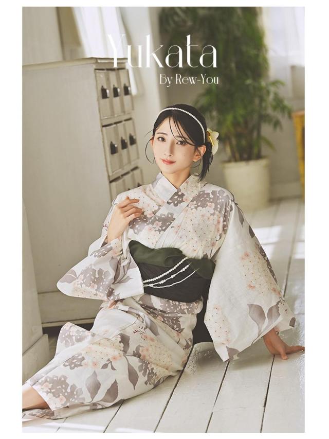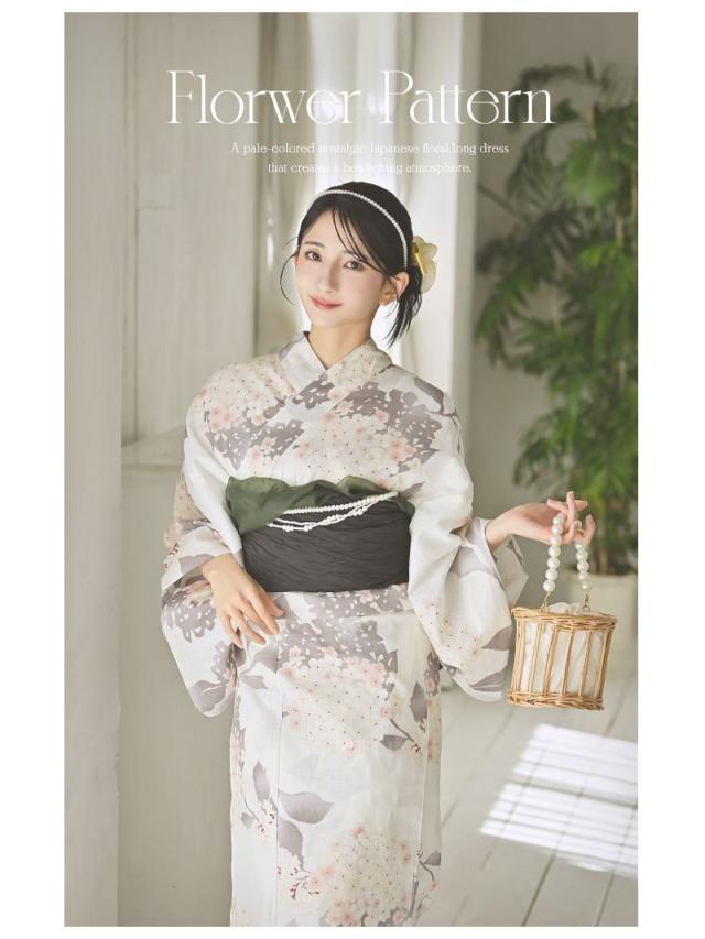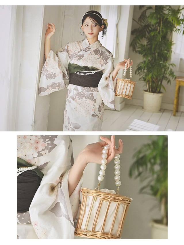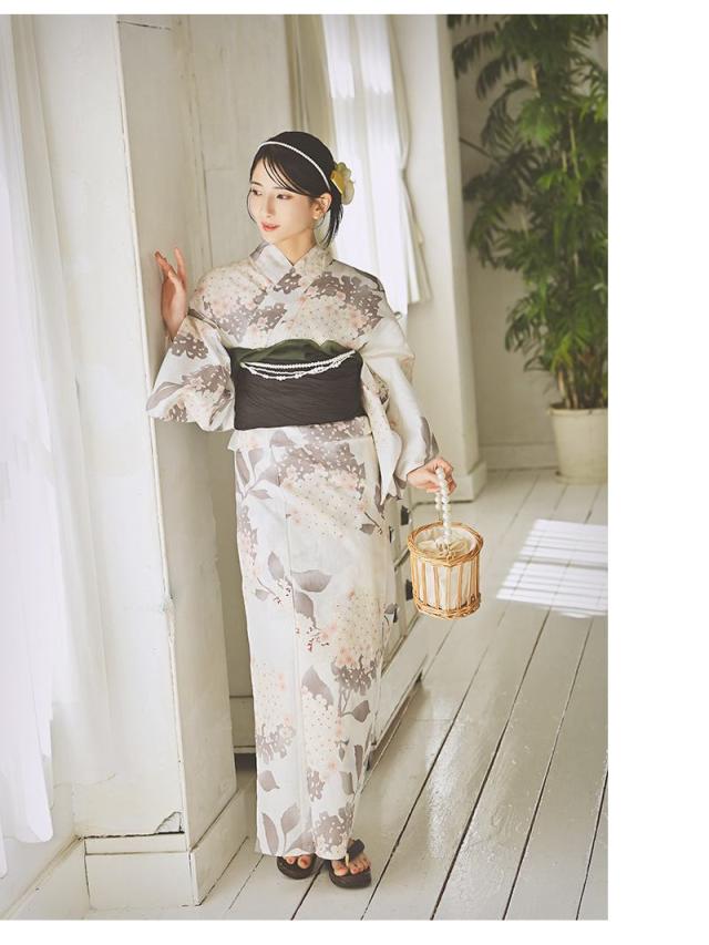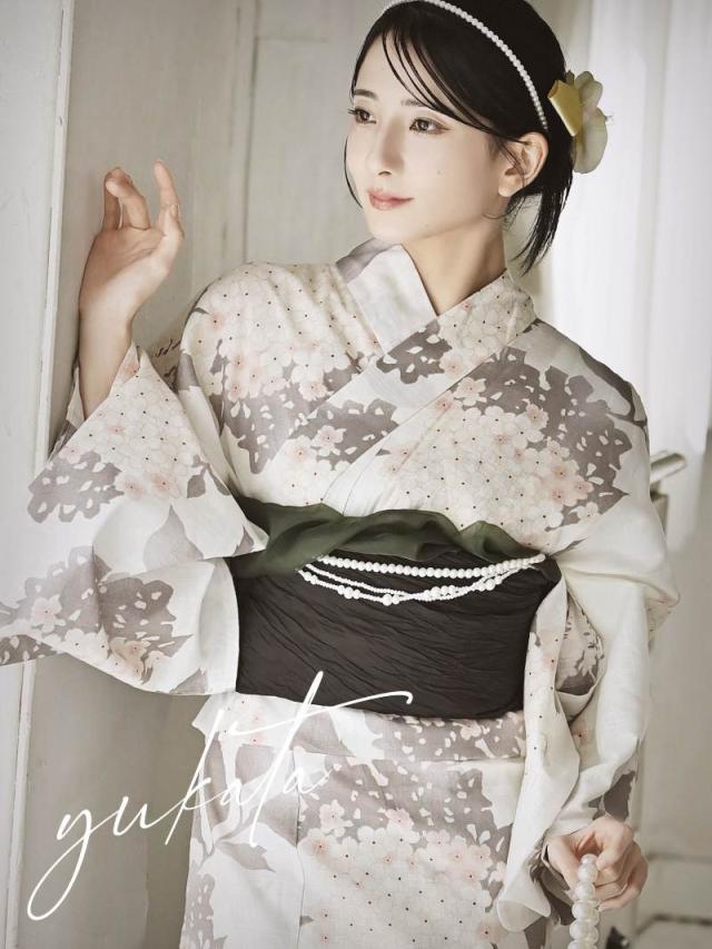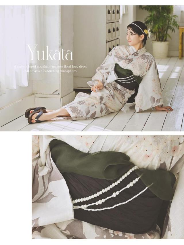 ☆くすみカラーの桜柄が上品で大人っぽいレディース浴衣セット。