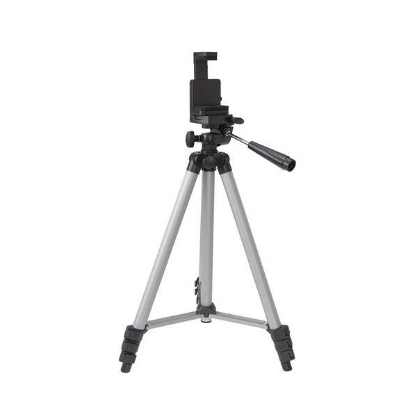 三脚やカメラアクセサリーにスマートフォンを取りつけるアダプターと、軽快な4段、コンパクト三脚のセットです。素早いセッティングが可能なセンターポール式。デジタルビデオカメラやミラーレス一眼まで使えます。三脚寸法(約) : 最大開脚高1,250mm(内EV165mm)、最小開脚高400mm、収納長さ420mm