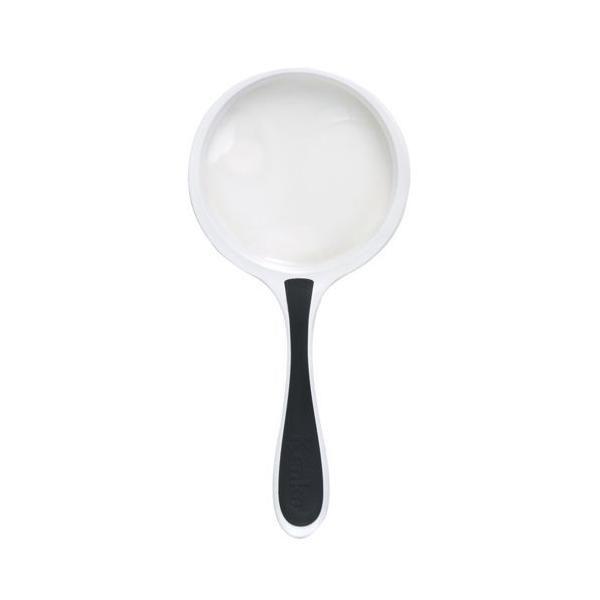 75mmの大きめレンズで広い範囲が見られる、白と黒のツートンカラーがシンプルな手持ちルーペです。 新聞、雑誌、地図などを長時間見るときにも目が疲れにくい倍率2倍。より小さな文字も見やすい3.5倍の小玉レンズも付いて、さらに拡大して見たいときに便利です。約59gと軽く、滑りにくい素材を使用した持ちやすい持ち手もポイントです。