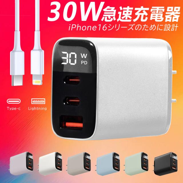 【ケーブル無料!なくなり次第終了】 iPhone16 充電器 30w 急速充電器 PSE認証 スマホ充電器 ACアダプター iphone充電器 iPad PD充電器 iPhone17/16/15/14 Android 3ポート 携帯充電器 超小型 液晶パネル付 Type-C充電器 多種機対応 充電器