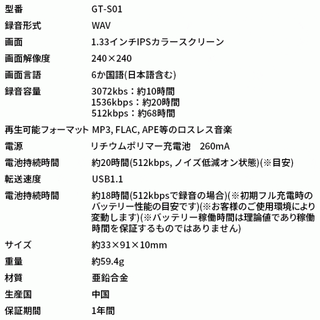 ■ GT-S01(ボイスDX) | スマホ通話録機能搭載高音質ボイスレコーダー【ボイスレコーダー】【キヨラカ】