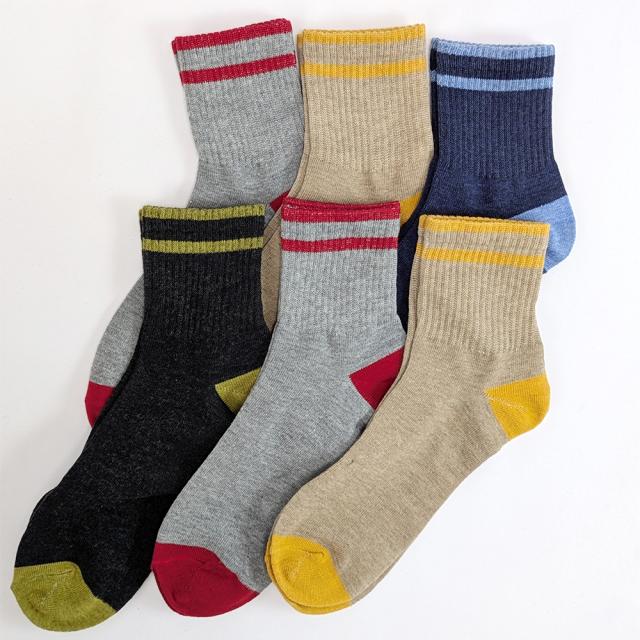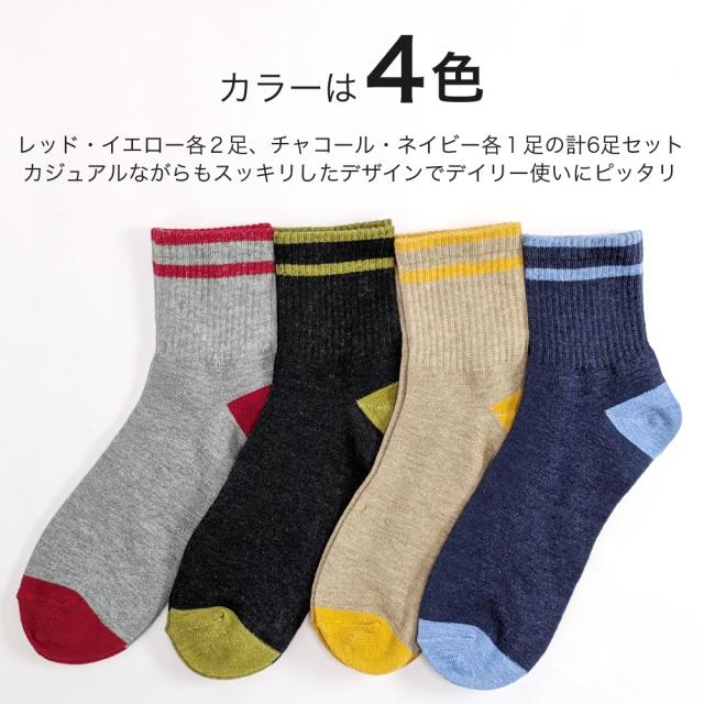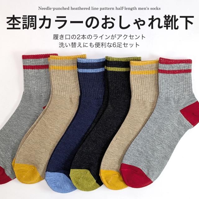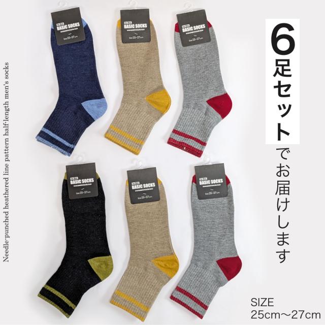 靴下 メンズ ソックス 6足セット 杢カラー リブ調サポート薄手 夏 カジュアル ハーフ丈 ミドル丈 くつ下 伸縮性 中高校生