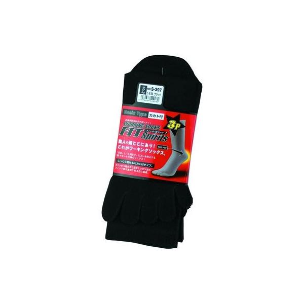 直送 代引不可・他メーカー同梱不可 おたふく手袋 S-397 5本指カカト付 ブラック 3足組 S397 S397フィットスピリッツ 2112229S