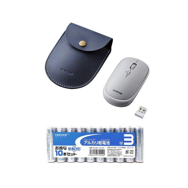 M-TM10DBGY+HDLR6/1.5V10P 直送 代引不可 エレコム BlueLEDマウス/薄型/無線/4ボタン/ポーチ付/グレー + アルカリ