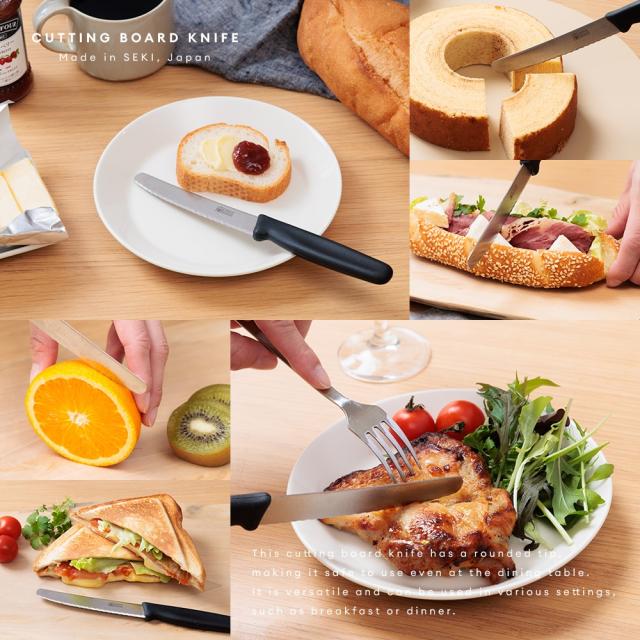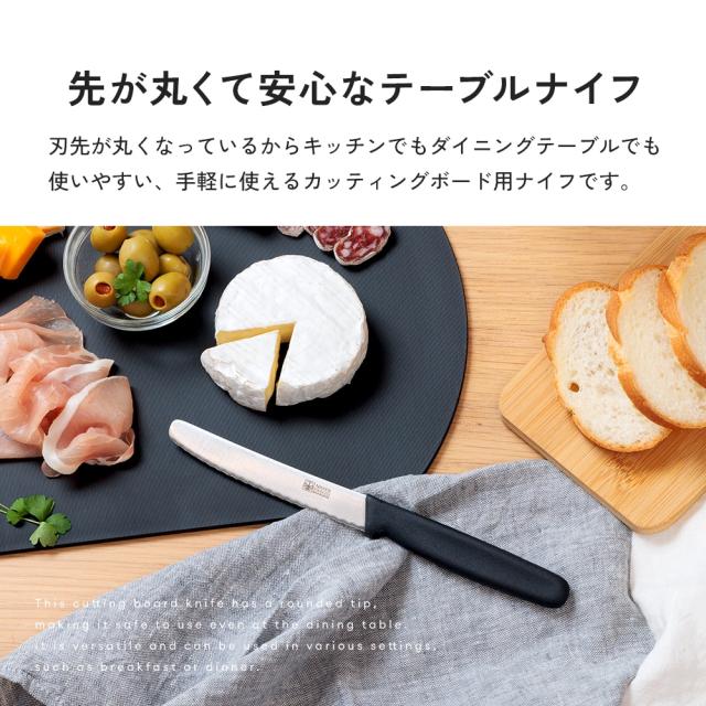 岐阜県関市の職人が手仕上げした、刃先が丸い安心設計のカッティングボード用ナイフ。