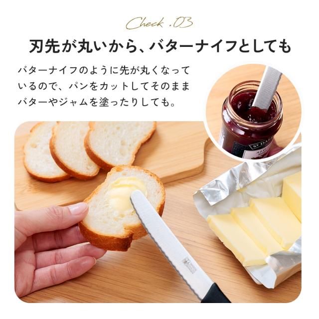 食洗機対応 カッディングボード用ナイフ 日本製 ステンレス テーブルナイフ 小さい ミニ 刃先が丸い 包丁 小型 パン切り包丁 パンきりナイフ 果物ナイフ バターナイフ ブレッドナイフ 波刃 キャンプ アウトドア