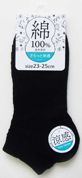 ●品名・婦人 表糸綿100%ルミーショートソックス 黒