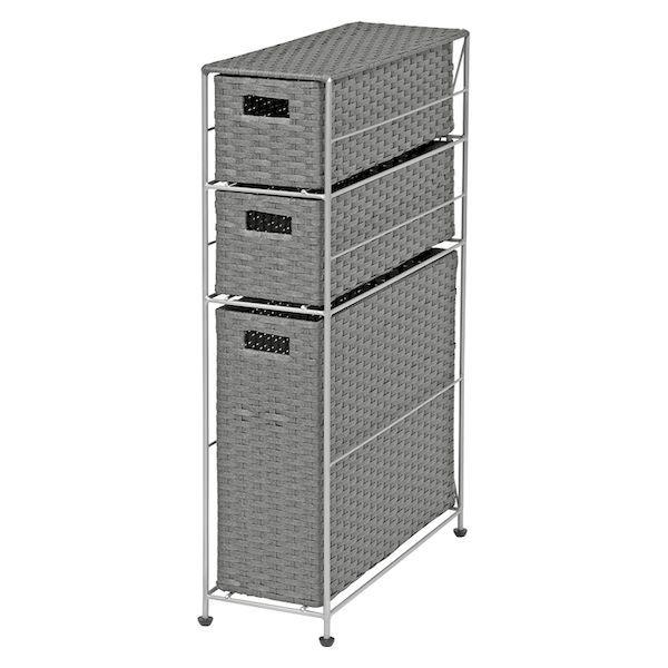 ●隙間に収まるトイレラック。通気性の良いバスケットの引出しにペーパーロールや小物を収納できます。