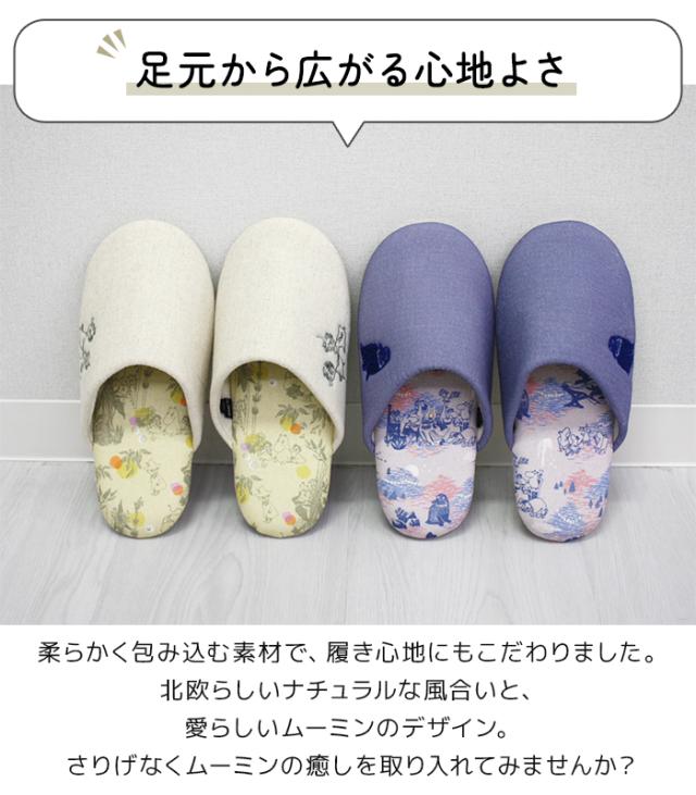 ムーミン スリッパ 大人 室内 レディース ルームシューズ 室内履き おしゃれ 北欧 MOOMIN 約22〜24cm対応 ムーミン 初夏 / 晩夏 (Y) かわいい ギフト プレゼント ムーミンシリーズ 室内用 部屋ばき 室内ばき オフィス 贈り物 内祝い 引っ越し祝い ベージュ ブルー