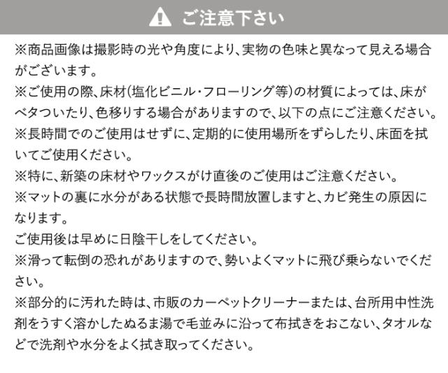 ※ご使用の際、床材(塩化ビニル・フローリング等)の材質によっては、床がべタついたり、色移りする場合がありますので、以下の点にご注意ください。