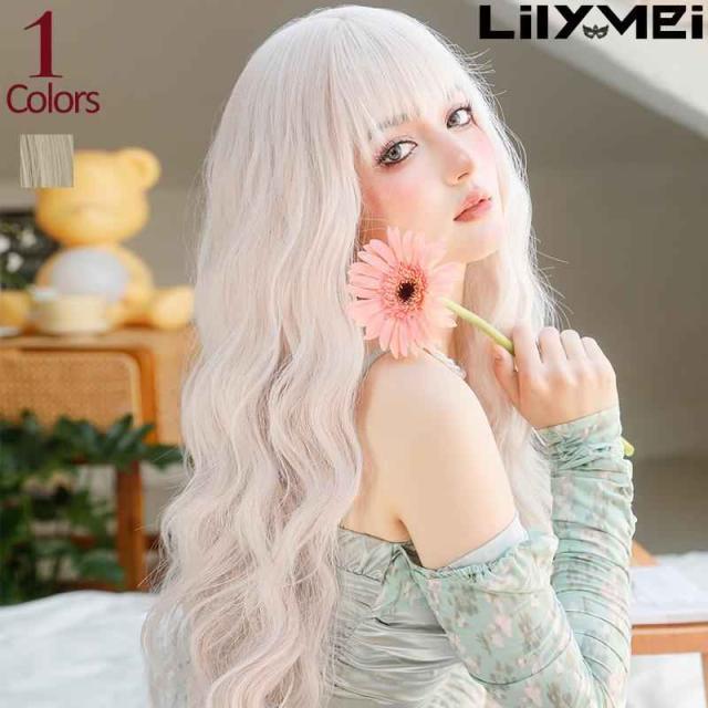 新作 ホワイトブロンド ウェーブ ロング ウィッグ ニュアンス イベント コスプレ ウェーブ