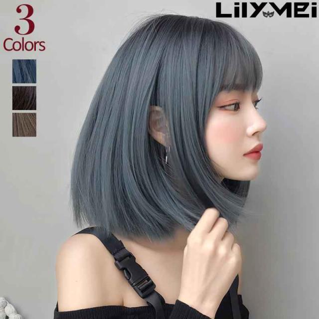 大人フレンチ ボブ 【ネット付き】 ウィッグ グラデーション カール グラデ アッシュ 耐熱フレンチボブ くすみブルー 2020年夏 新作 セミロング ミディアム フルウィッグ 【送料無料】 グラデーション メッシュ アッシュ 耐熱 カール ボブ グレー ストレート 灰色 青髪 フルウイッグ かわいい 女子 青 結婚式 成人式 仮装 ピンク ダークブラウ ブルー