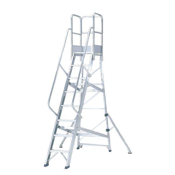 ●※天場の高さが2m以上の製品には、階段両手すり天場三方がセットされています。法規(労働安全衛生規則)により、必ず階段両手すり天場三方を付けてお使いください。