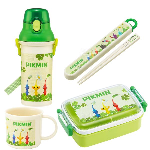 ピクミン お買得4点セット 抗菌 角型お弁当箱 450ml 箸&箸箱 コップ プラ水筒