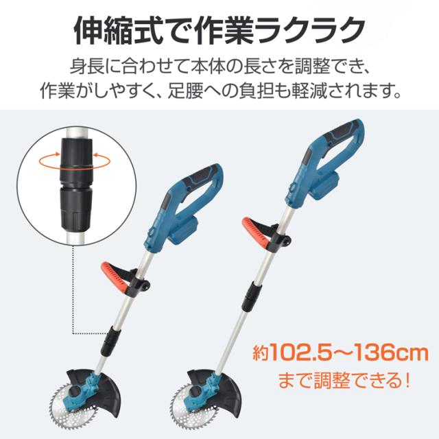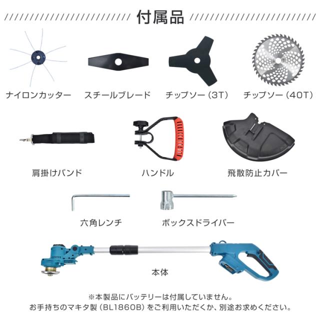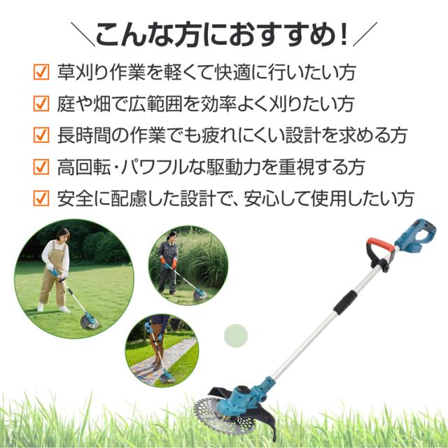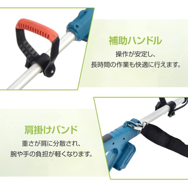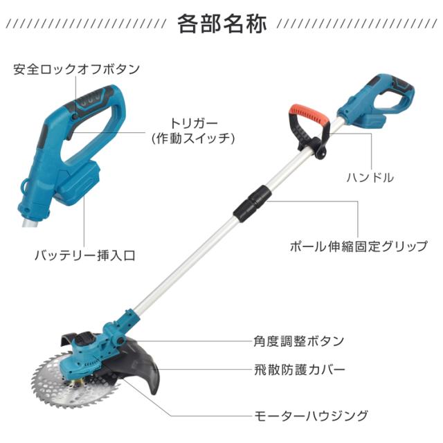 電動草刈機 ブラシレス 草刈り機 草刈機 電動 芝刈り機 刈払機 草刈り 充電式 刃 チップソー ナイロンカッター スチールブレード ナイロンコード 肩掛けベルト 安全設計 マキタ 互換 コードレス 家庭用 女性 軽量 安全 除草 雑草対策 造園 gd011